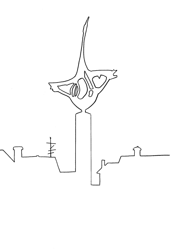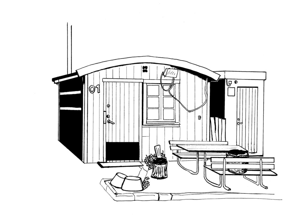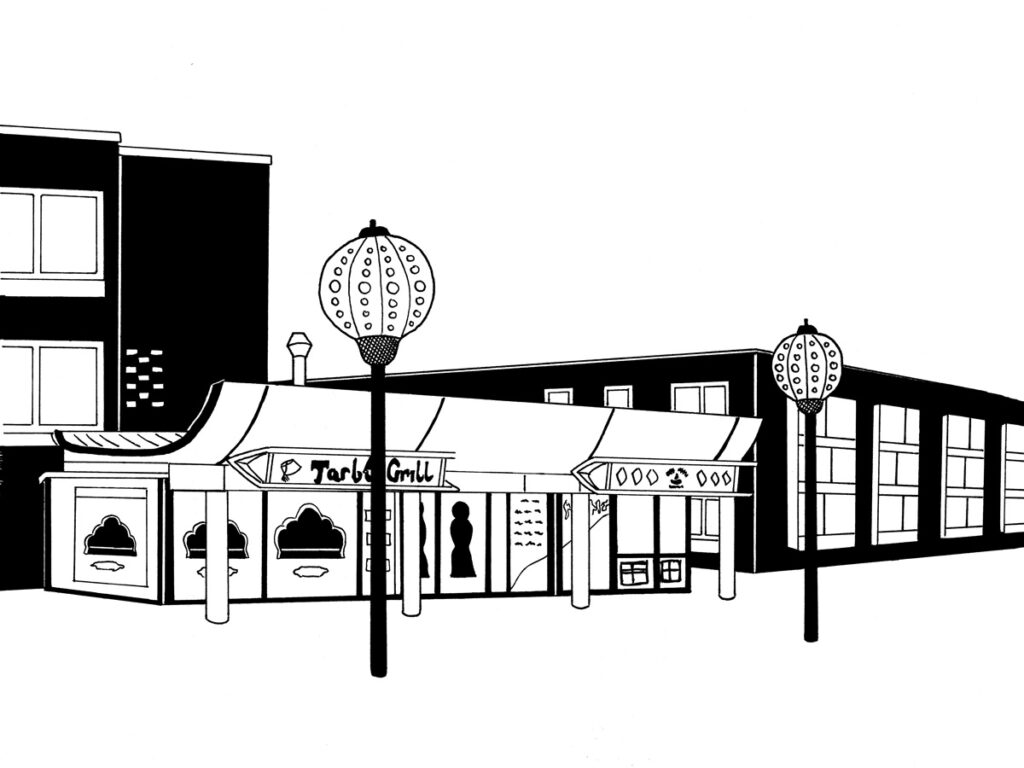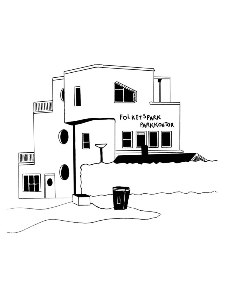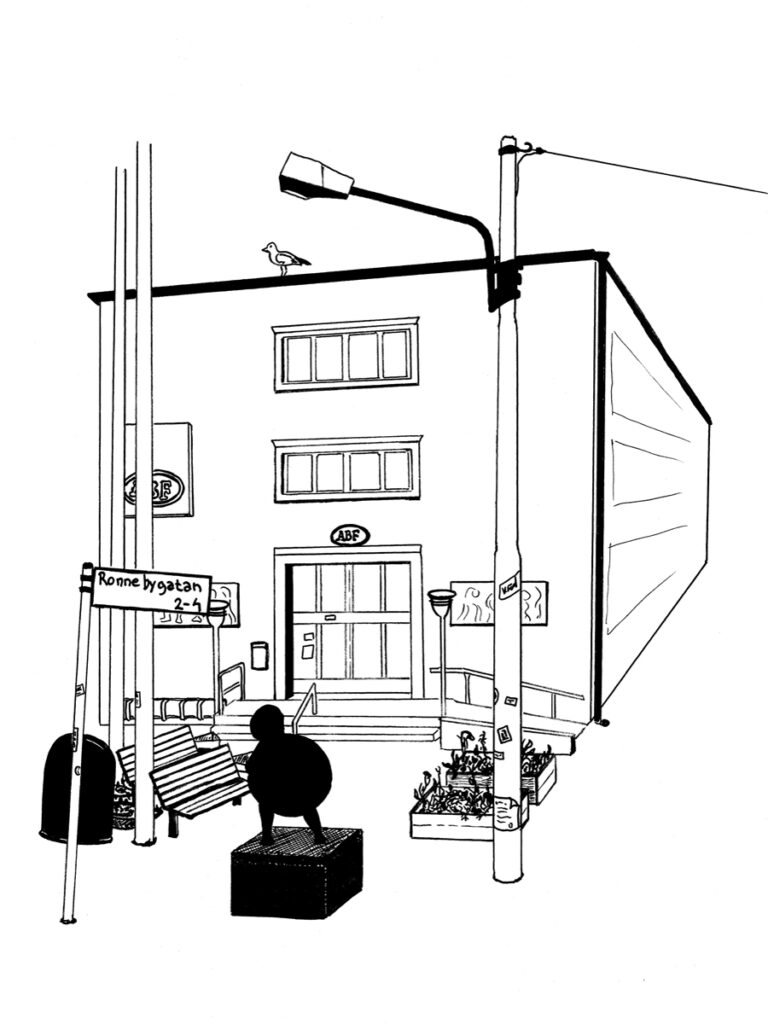 Året därpå var jag på ett skrivarresidens i Tranås, men hade skrivkramp de luxe. Jag bestämde mig för att börja teckna av random byggnader i stan för att åtminstone göra någonting. Svart tusch och enkelt och stiliserat blev melodin. Det var riktigt kul, och satte igång kugghjulen i skallen. Det ena gav det andra och jag skrev dikter till bilderna, vilket sedan resulterade i häftet ”Tranås 7+7”.