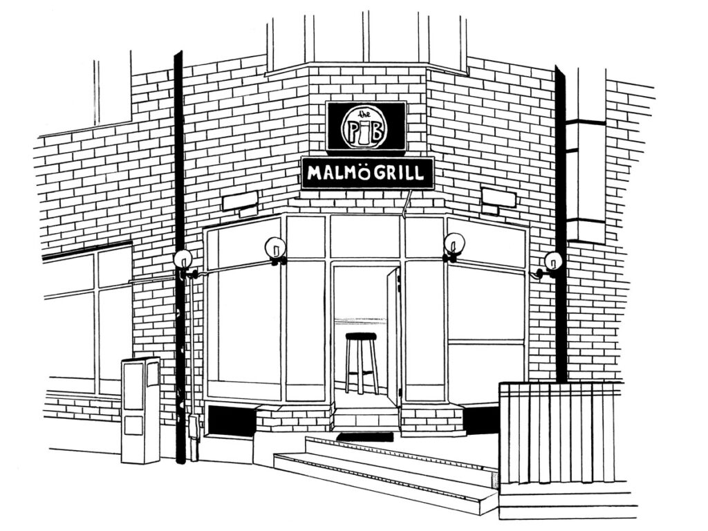Att teckna hade gett mersmak, och tillbaka i Malmö fortsatte jag med detta och utvecklade väl stilen en aning. Det trillade på, jag hade några utställningar, illusterade en artikel om arkitektur i lokaltidningen, bidrog med teckningar i en bok om Piraten. Några originalbilder auktionerades ut till förmån för Malmö Stadsmission på legendariska Galleri Bajs. 2023 ställde jag ut en handfull teckningarna på Greenspace Gallery i Ferryside, Wales. Det var en del av ett projekt med stöd av Längmanska kulturfonden, där jag ville hitta tvillingbyggnader till malmöbyggnaderna i Wales. Jag fann tvillingbyggnader och projektet fortskrider…